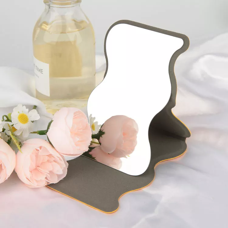 Привлекательный дизайн с волнистыми краями выделяется на фоне обычных зеркал, добавляя стильный и игривый штрих в вашу косметическую рутину и делая его идеальным декоративным элементом туалетного столика или дорожной сумки.