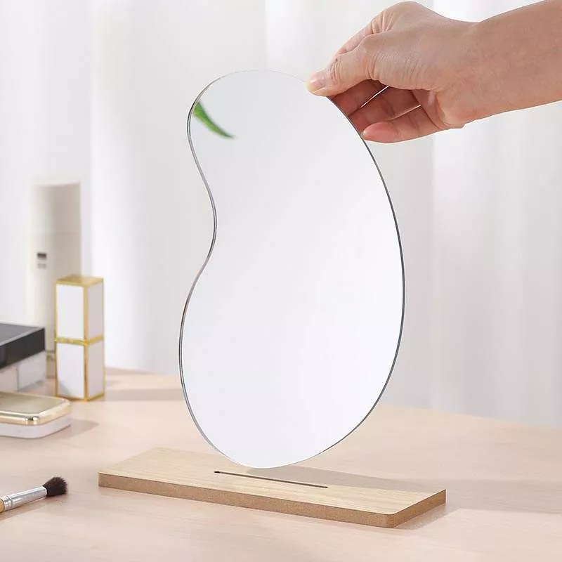 Волнистое настольное зеркало неправильной формы, изготовленное из высококачественного HD-стекла, обеспечивает четкое отражение без искажений для точного нанесения макияжа, проверки ухода за кожей и ежедневного ухода за ней. Обеспечивает четкий обзор и безупречный результат макияжа.