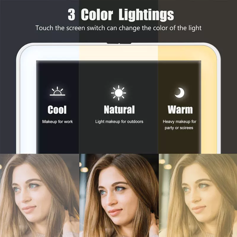 Это настольное зеркало для макияжа со светодиодной подсветкой имеет три регулируемых режима освещения (холодный, естественный, теплый), подходящие для любого сценария макияжа. Холодный свет идеально подходит для рабочего макияжа, естественный свет — для образа на открытом воздухе, а теплый свет — для вечерних мероприятий. Мягкое, немерцающее светодиодное кольцо обеспечивает реалистичную цветопередачу, гарантируя точное нанесение макияжа даже в темноте.