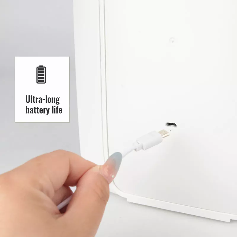 Это зеркало питается от встроенной перезаряжаемой батареи, поддерживает быструю зарядку USB-C и обеспечивает сверхдлительное время автономной работы для длительного использования. Нет необходимости в частой подзарядке, что делает его надежным как для повседневного домашнего использования, так и для длительных поездок. Энергоэффективная светодиодная конструкция также снижает энергопотребление.